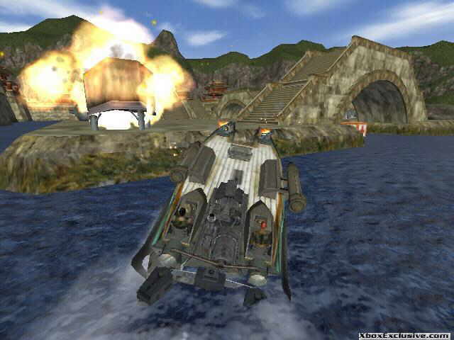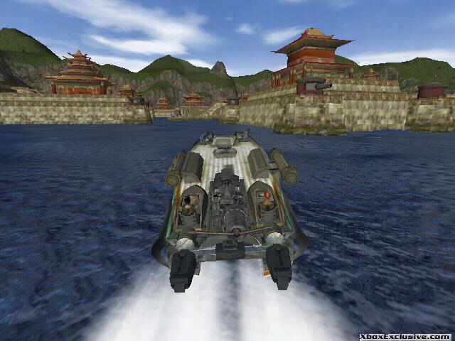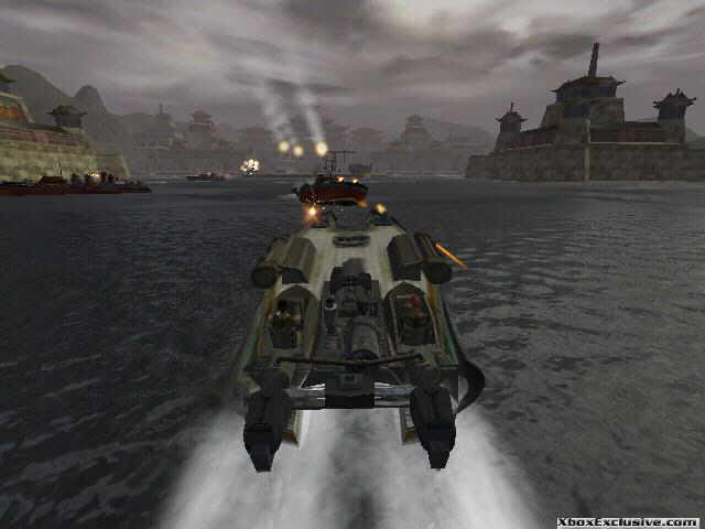 In terms of gameplay it seems Blood Wake has been branded outright as a Twisted Metal clone. But thats not the case, Blood Wake does have a personality of it's own.Unlike Twisted Metal, Blood Wake is a mission based game, featuring huge levels where you face off against dozens of gunboats. Blood Wake puts you in the lead role of several (close to 30) missions vital to the success of your clan over the vicious, but often over-confident Jade Kingdom, and the toweringly powerful Iron Empire. Missions find you carrying out a variety of objectives, from collecting tribute from port towns, to covertly taking out ammo dumps while an enemy is out of town, to your basic 'destroy all enemies' missions.